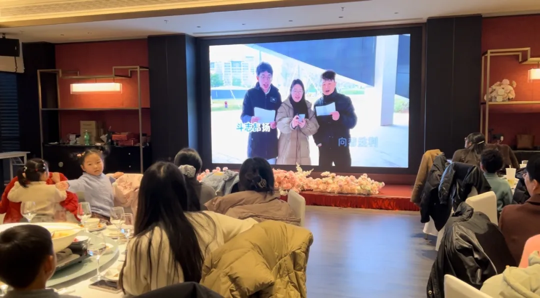 17:30,年会在主持人的热情开场中正式拉开帷幕,全体人员共同观看 2025 年度回顾视频,一幕幕奋斗的画面、一个个收获的瞬间,让现场员工倍感振奋,也为过去一年全体金辰人的凝心聚力写下生动注脚。