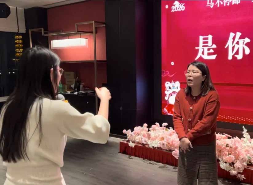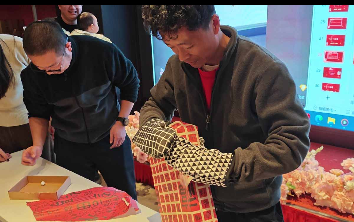本次年会精心筹备、亮点纷呈,17:00 起,员工们陆续到场签到,现场设置马年专属 “刮刮卡” 互动环节,大家在刮刮卡背面写下姓名与新春祝福并投入抽奖箱,为自己许下新年美好期许,温馨的布置让现场年味十足,暖意融融。