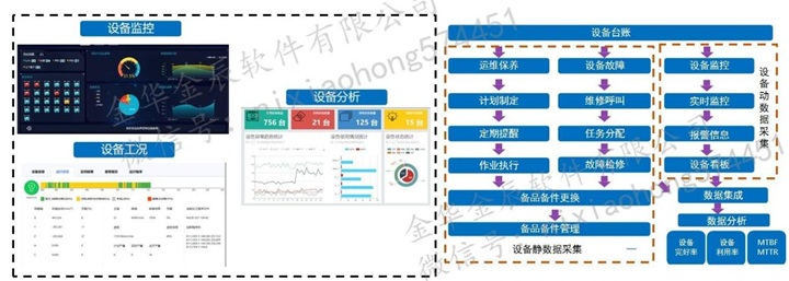设备运维:完成对设备运维全生命周期的管理,包括设备台帐、点检、保养、维修、改造、报废以及备品备件管理