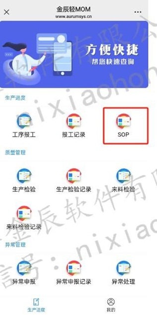 SOP分为两种:检验SOP和加工SOP,检验SOP在来料检验单跳转,加工通过扫描工序计划单进行查询;