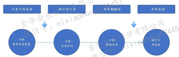 月度计划通过MRP滚动运算;中周期通过周计划锁定后下达形成缺料、追料报告;短周期通过三天日计划提前关键件预备料,三级计划通过数据、时间、账务的层层过滤,保证生产正常开工;同时通过例外信息报表,对历史异常进行监控处理,避免多采购,控制采购成本。